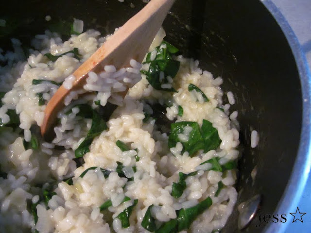 I've been eating a bit of rice pasta, which is actually no where near as horrible as I was led to believe - as long as you don't over cook it, it's actually quite nice! As for the risotto, I'm glad to report nothing's changed there, I can still cook that as normal! But I felt like being a bit adventurous after stumbling upon a post from Honest Cooking - a lemon risotto with mint and ricotta. I decided to try it without the mint, and with a bit of spinach, and a side of roast veggies. Here's how we went...